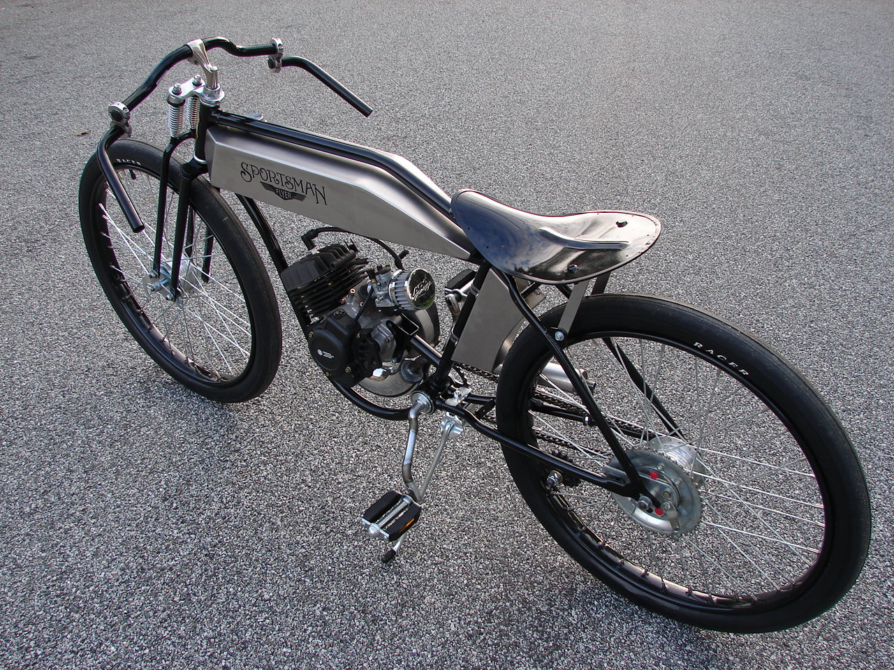 A Sportsman Racer in a fresh coat of black powder coat. This bike came out very nice and is a good example of what a solid design and standardization of components can achieve. This bike kicks ass!